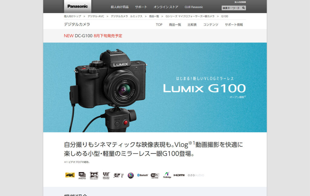 先月パナソニックが、Vlogger 向けカメラ「LUMIX G100」を海外で発表したわけですが。