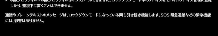 ロックダウンモードの設定方法や詳細な内容は下記ページで解説されています。