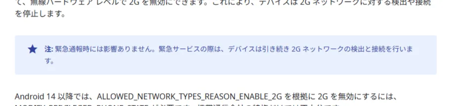 そのため、このようなリスクへの対策としてスマートフォンの 2G 通信を無効化することがあげられています。