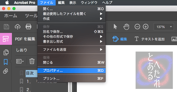 こうすると PDF を開く際にしおりパネルが一緒に表示されるようになります。