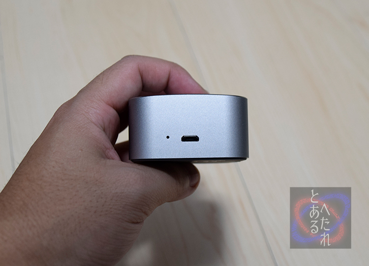 側面には Micro-USB とステータスを表す LED ランプ、ストラップホールがあります。