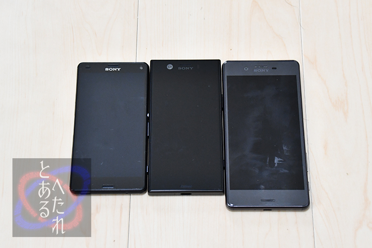 左から Xperia Z3 Compact、Xperia XZ1 Comapct、Xperia X Performance です。