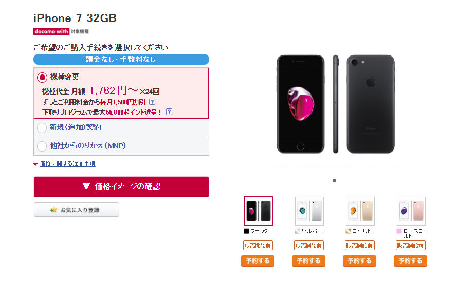 ⇒ ドコモからのお知らせ : 「docomo with」対象端末に、iPhone 7(32GB)を追加 | お知らせ | NTTドコモ