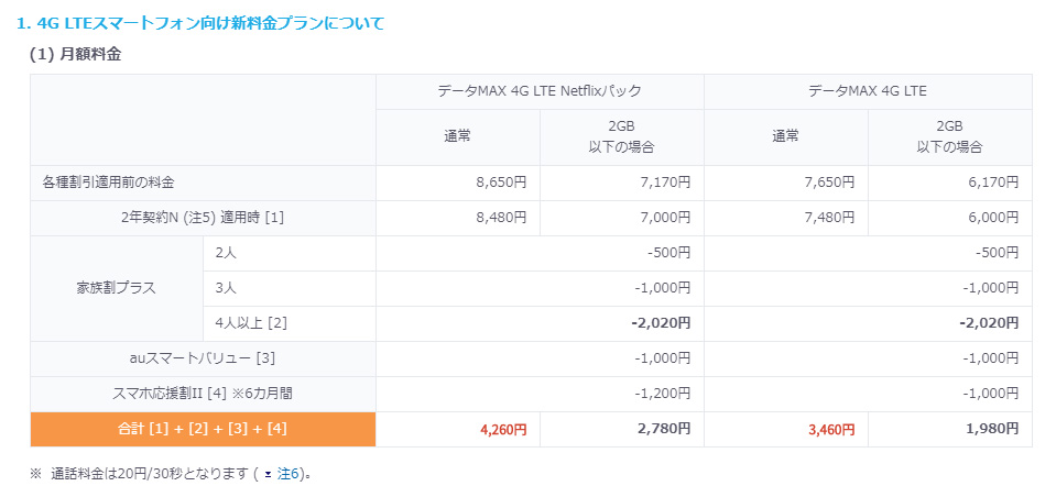 引用元3:データ使い放題で月額3,460円からの新料金プラン「データMAX 4G LTE」などを6月2日から提供開始 | 2020年 | KDDI株式会社