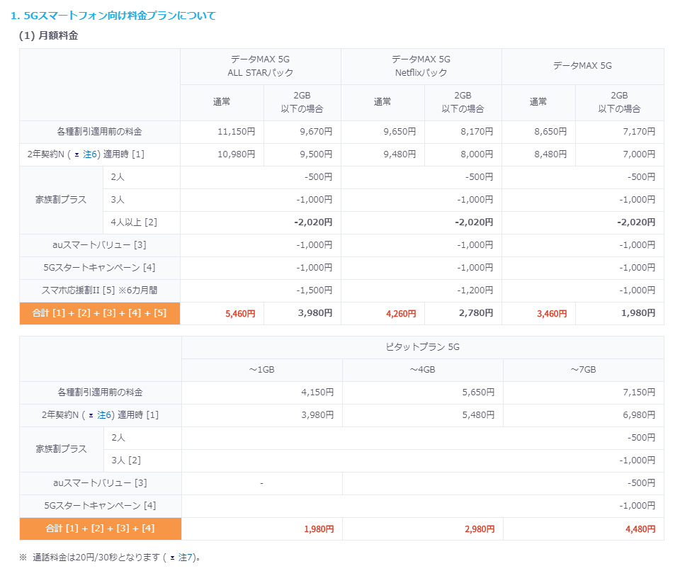 引用元4:データ使い放題で人気エンタメコンテンツがセットのau 5G料金プラン「データMAX 5G ALL STARパック」などを3月26日以降に提供開始 | 2020年 | KDDI株式会社