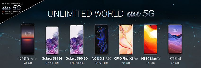 引用元1:“UNLIMITED WORLD au 5G”始動。第5世代移動通信サービス「au 5G」、3月26日から開始 | 2020年 | KDDI株式会社